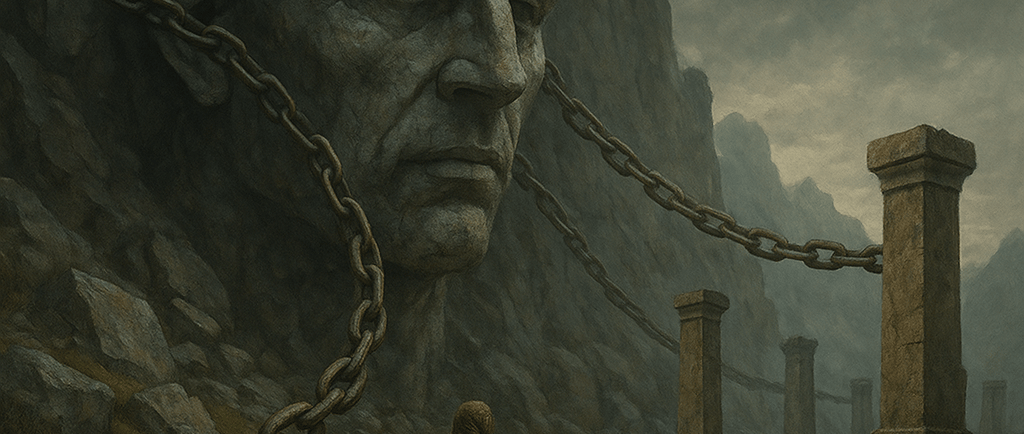 Prometeu, acorrentado por trazer o fogo da consciência.