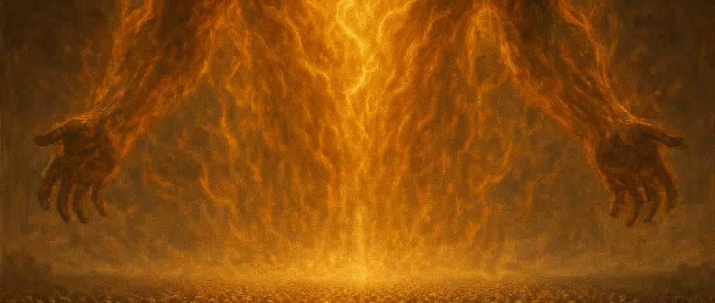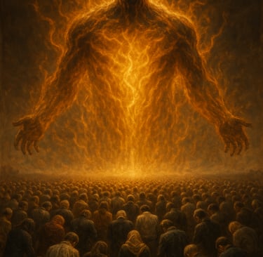 E se a fé humana estiver alimentando entidades que nos usam como gado energético? Uma investigação simbólica sobre divindades, dominação e despertar.